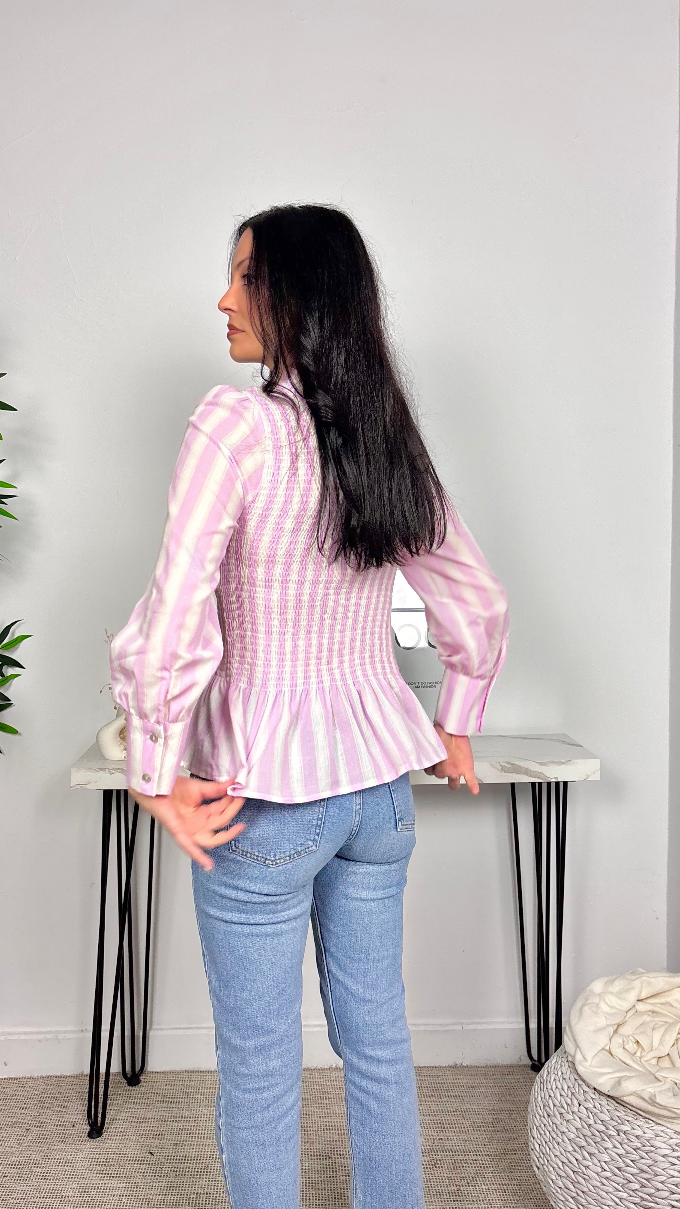 Blusa Nido de Abeja Rayas Rosa