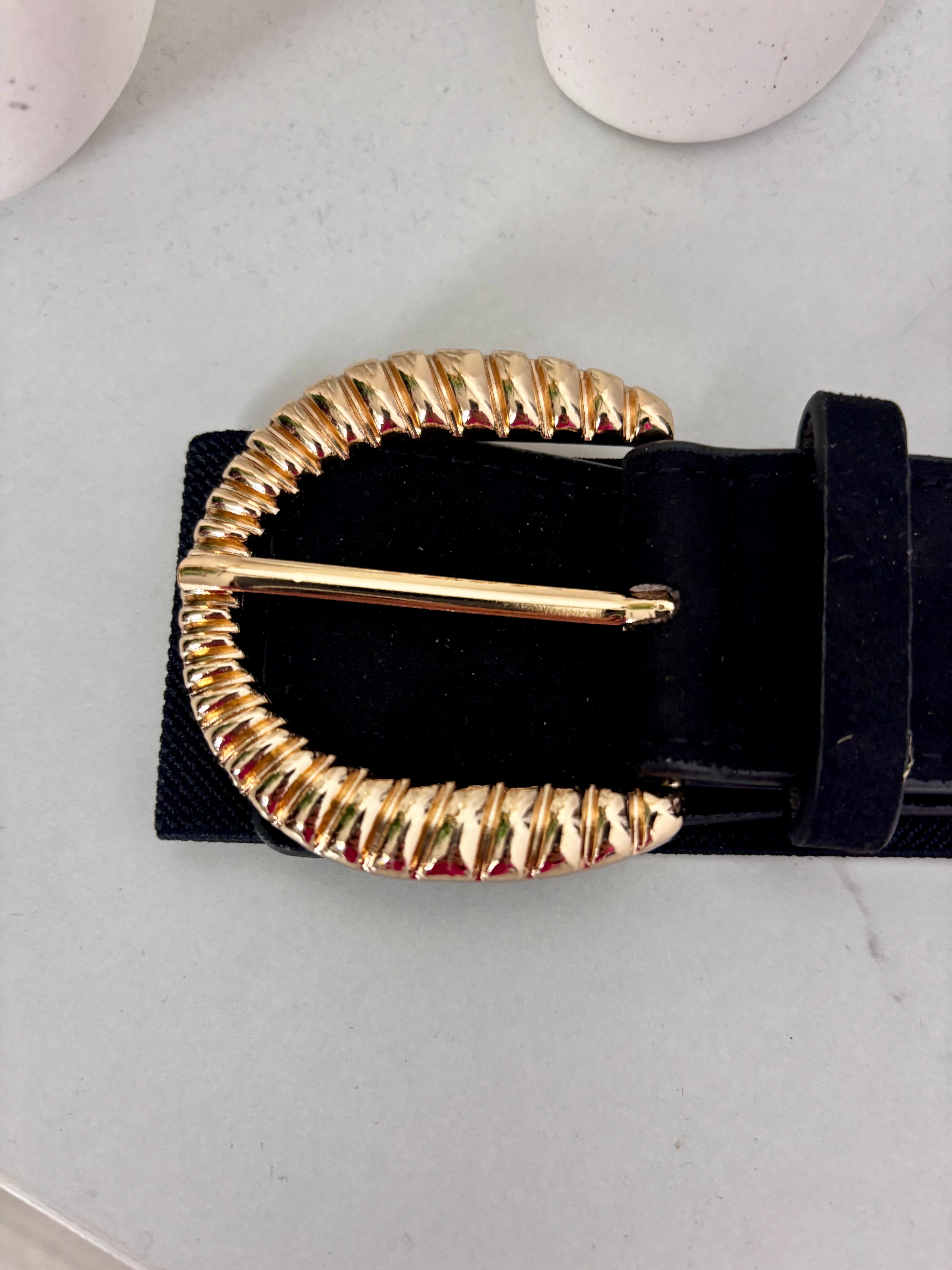 Cinturón con parte de goma elastica y parte de antelina. Hebilla dorada. Para poner con vestido o...