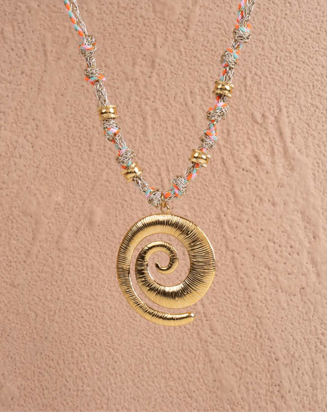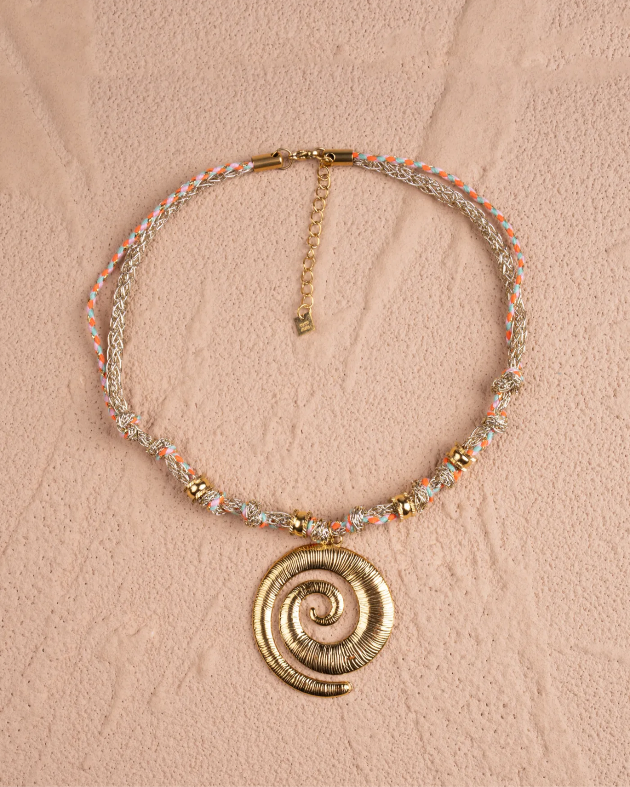 Colgante con cadena de hilo y cierre de acero. Abalorios mini colgando.