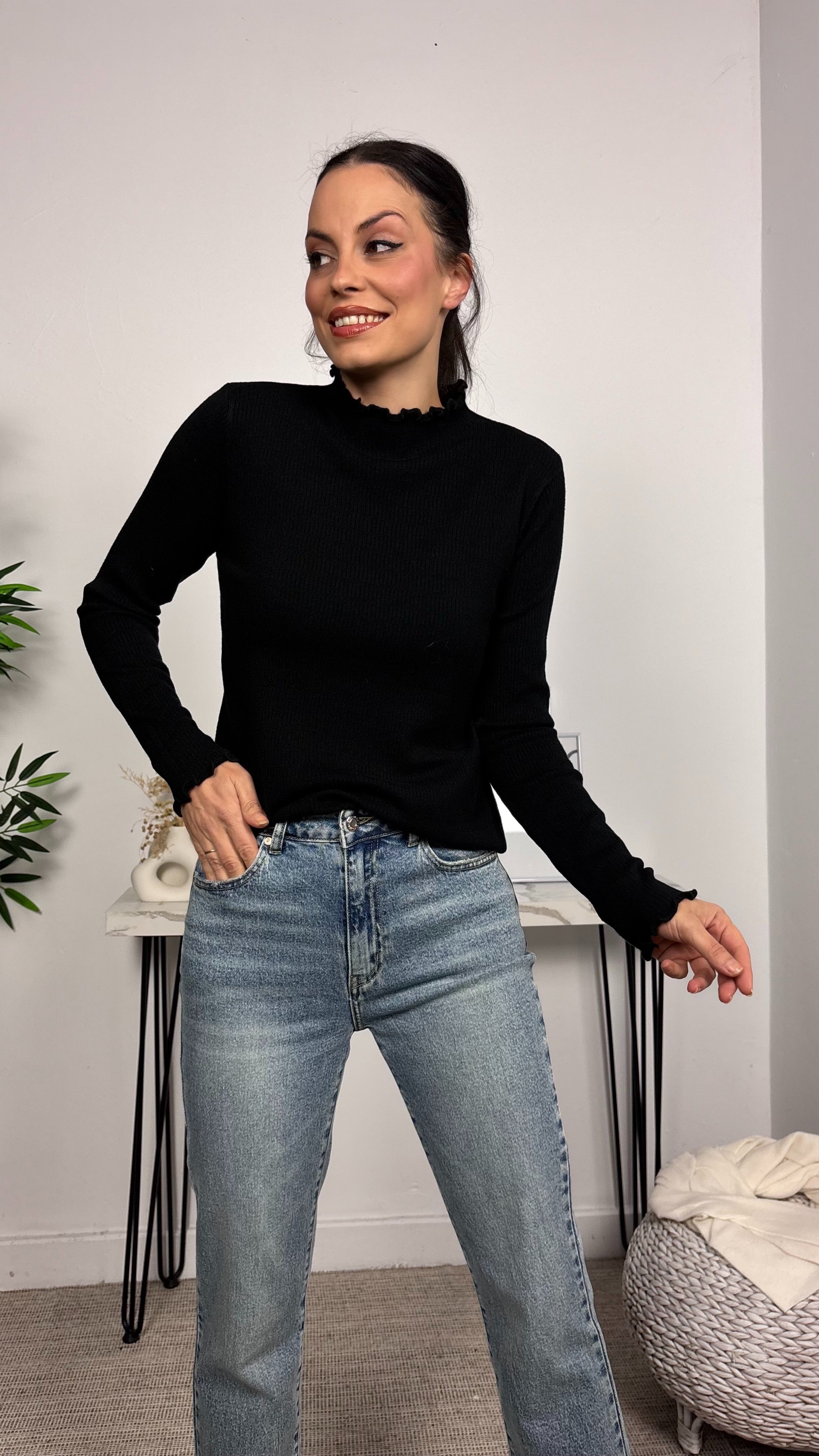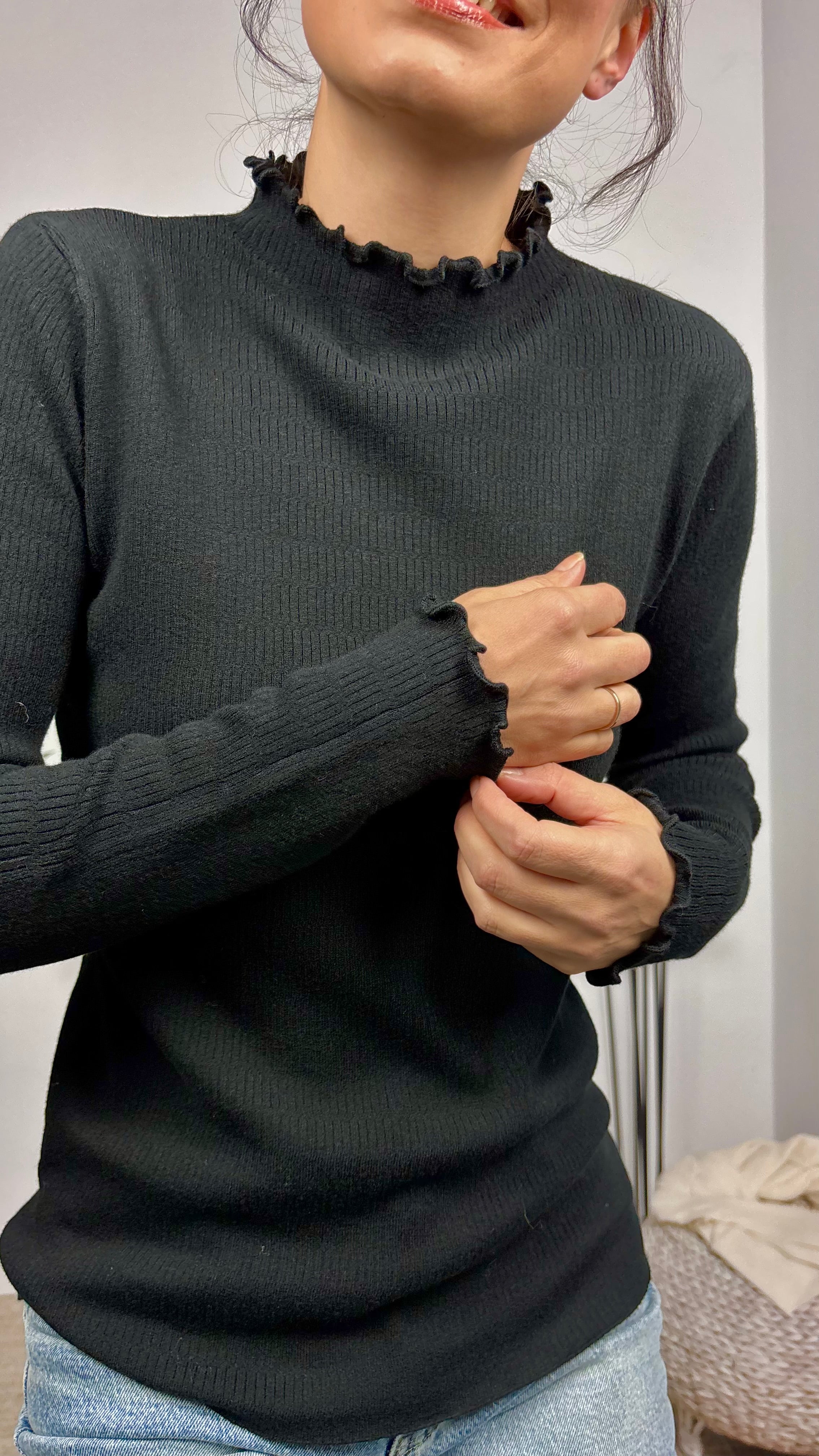 Jersey de canalé semigrueso con detalle de onda en el puño y en el cuello. COMPOSICIÓN 45%Viscosa...