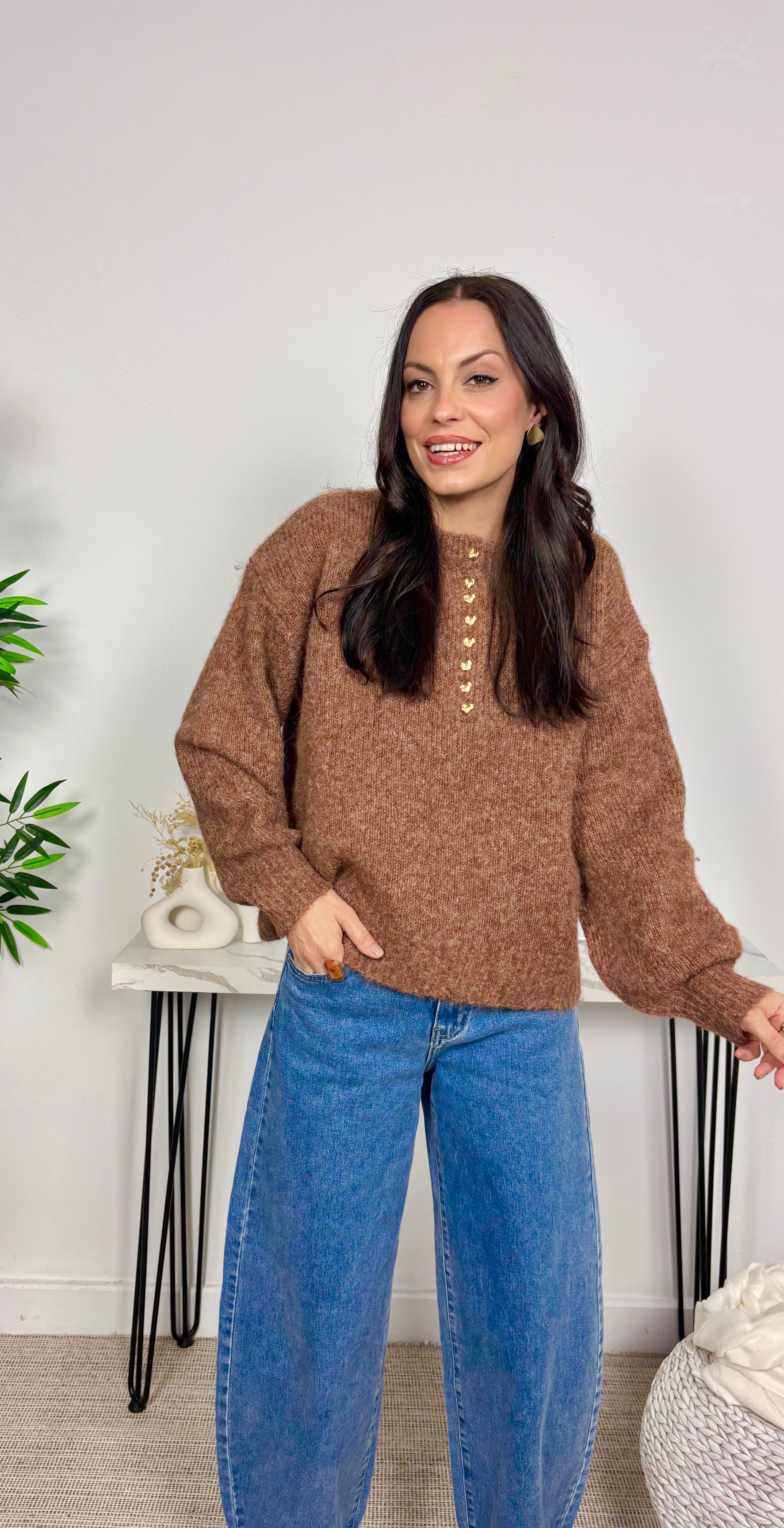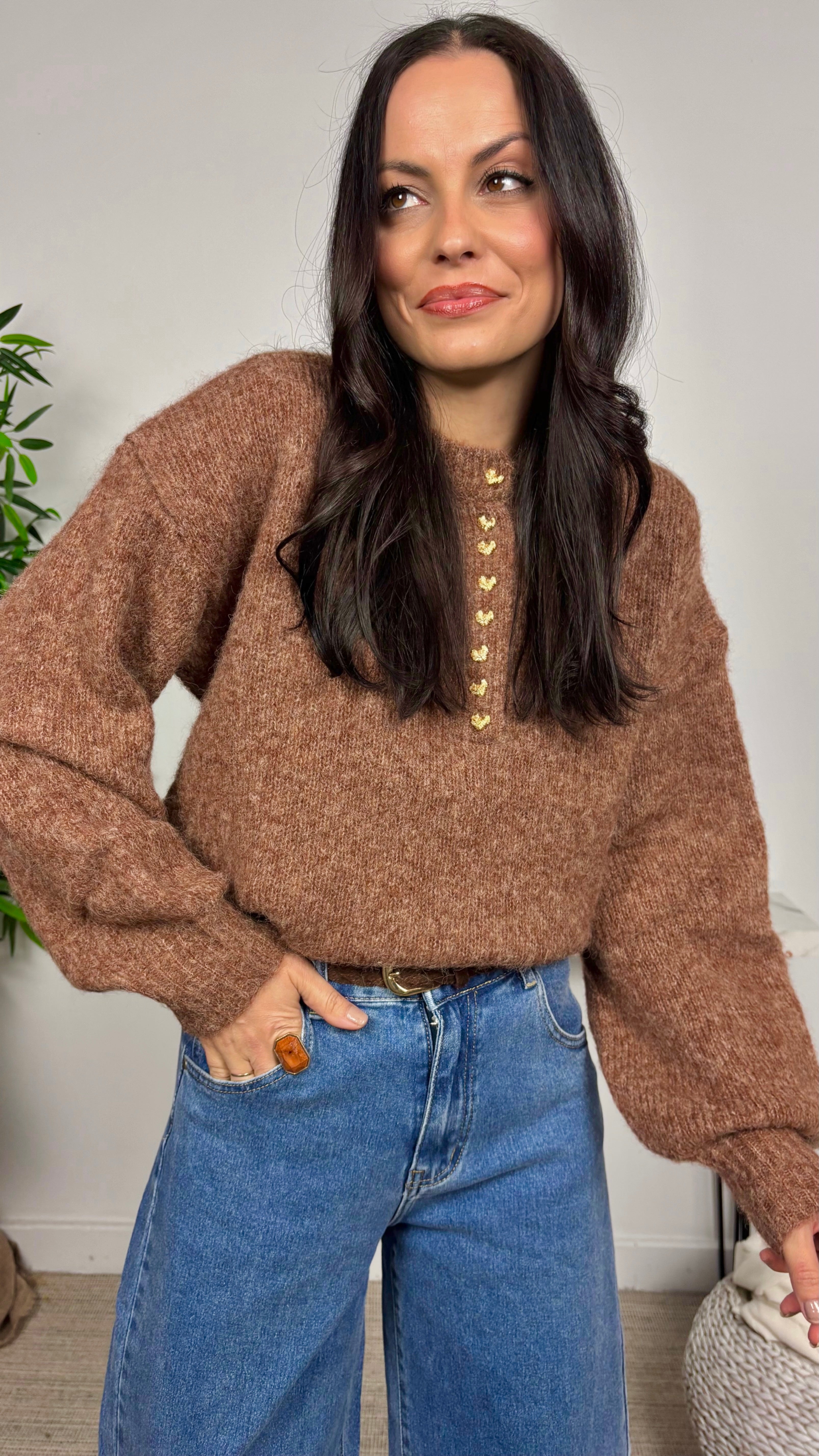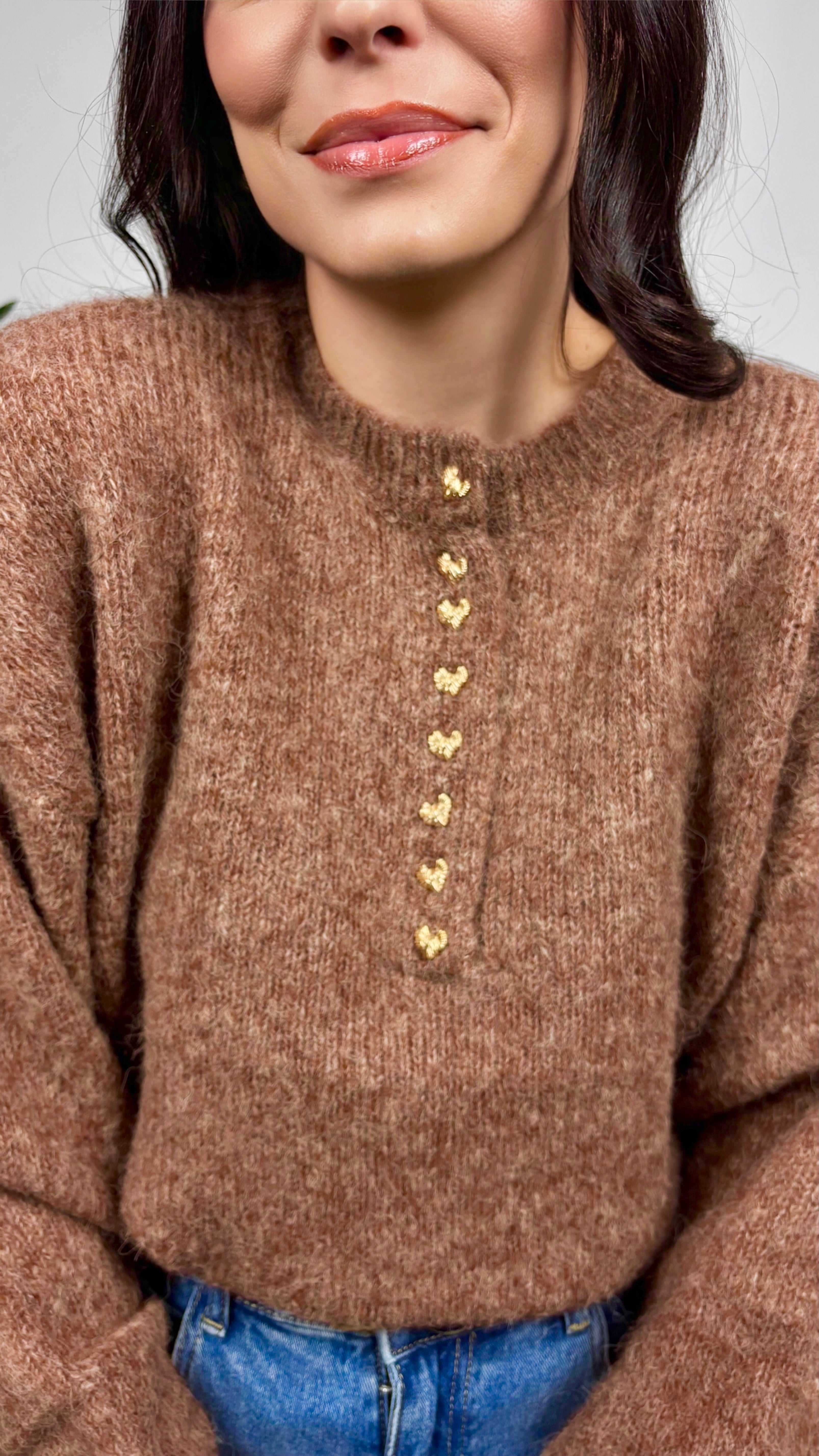 Jersey con botones decorativos en la parte alta en dorado con forma de corazón. Lleva un ligero...