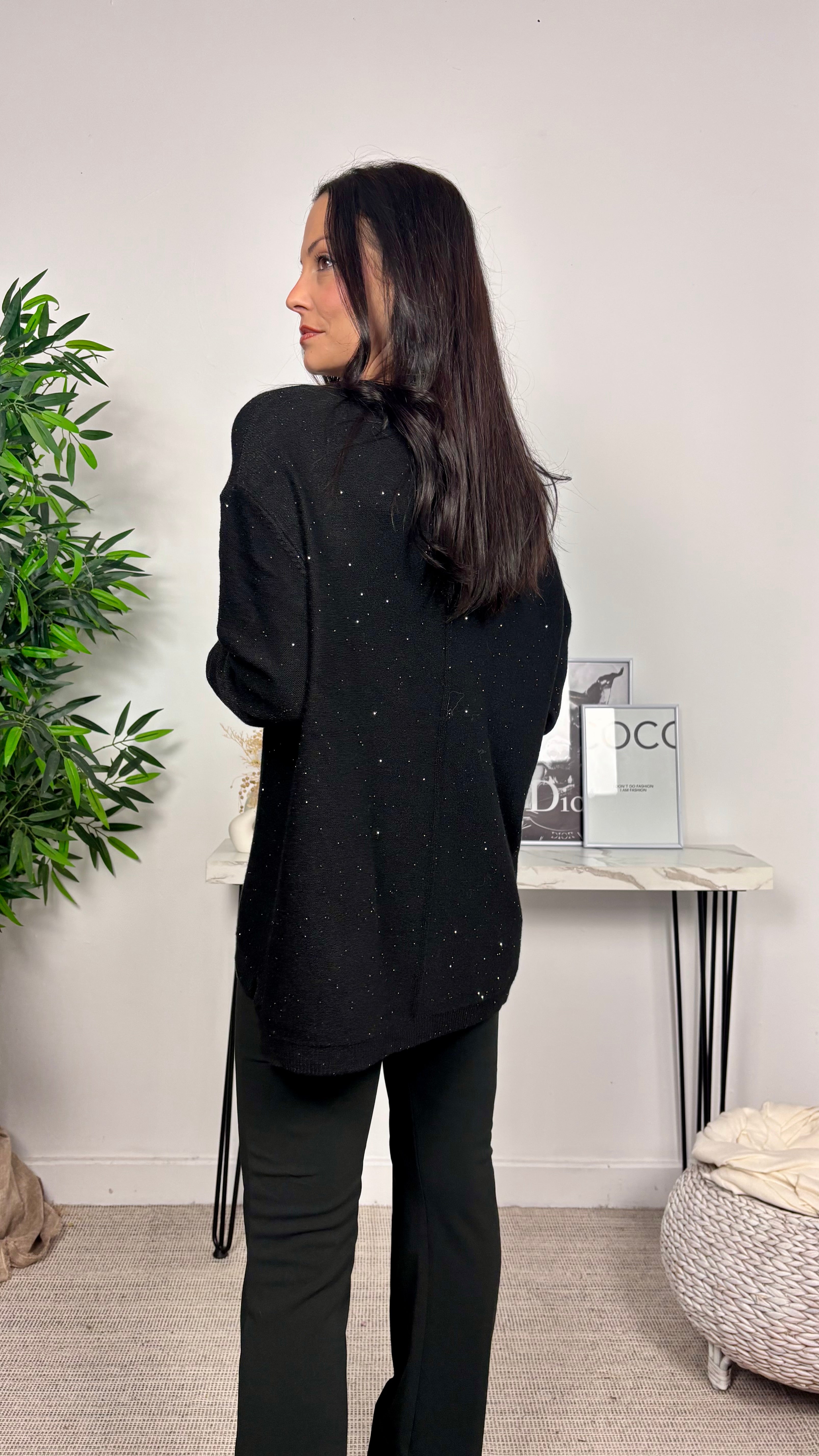 Jersey con mini lentejuelas cosidas. Ligeramente mas largo por detrás.