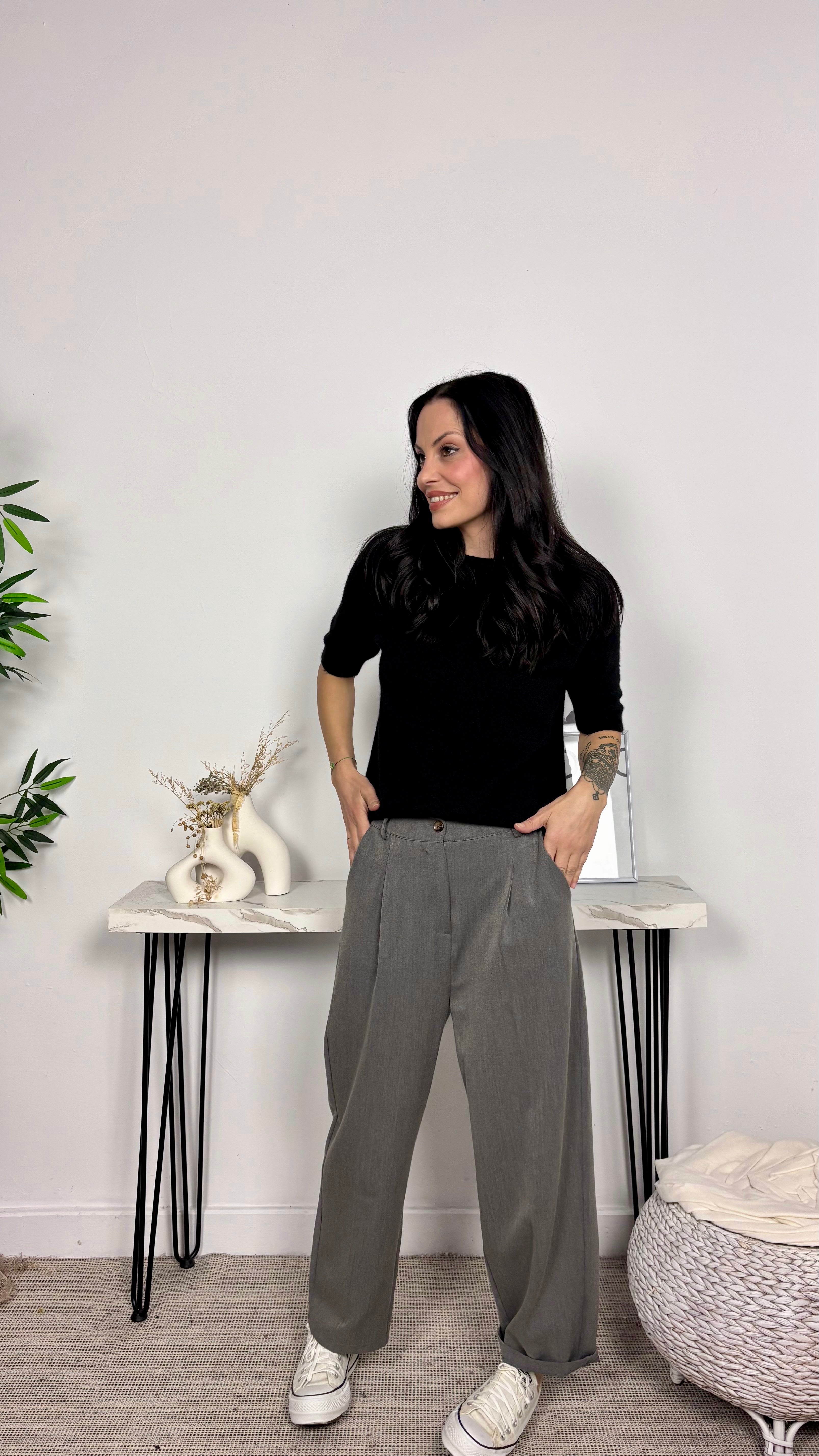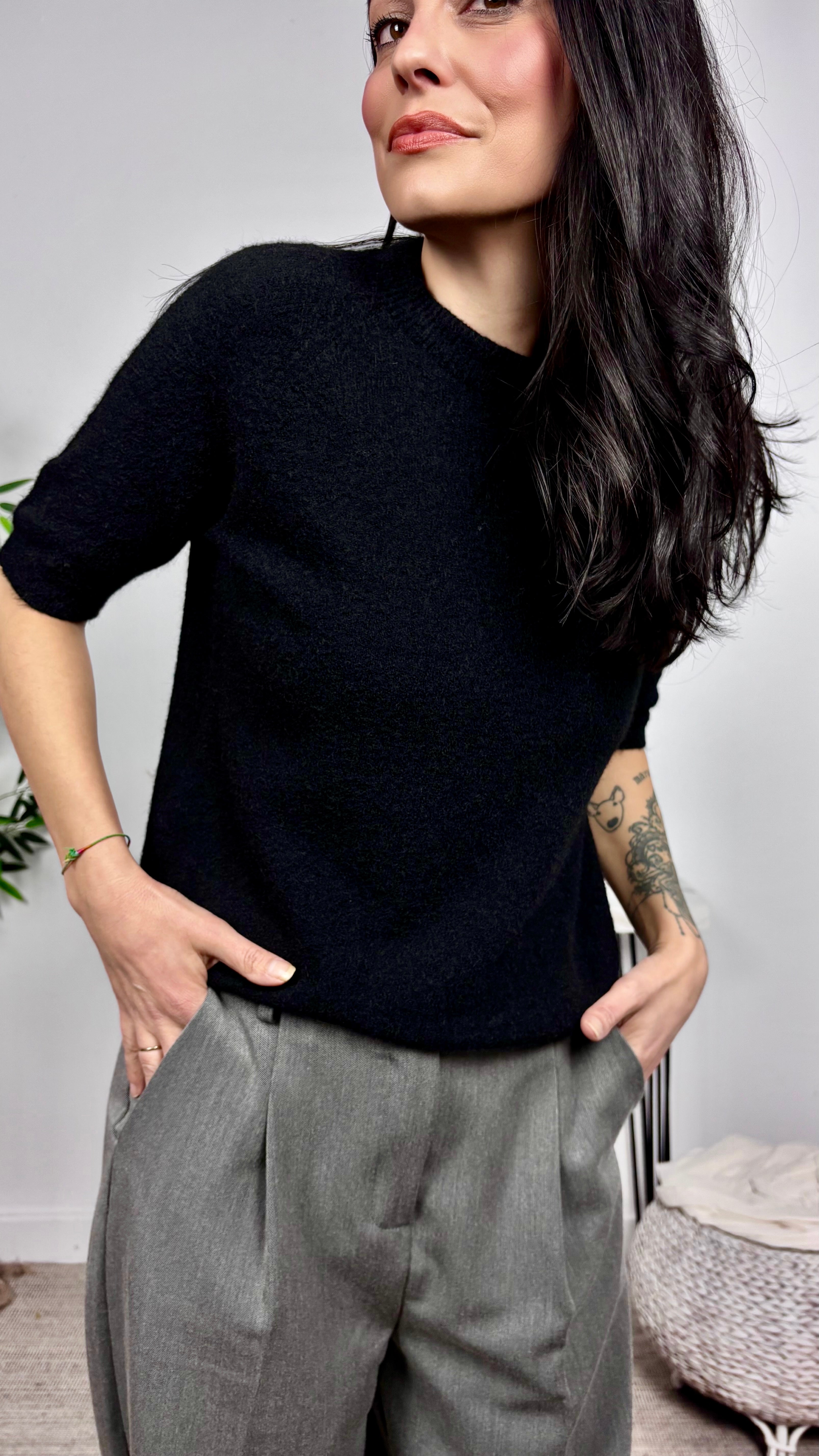 Jersey básico de cuello redondo con manga corta. Tejido ligero. Tejido elástico.