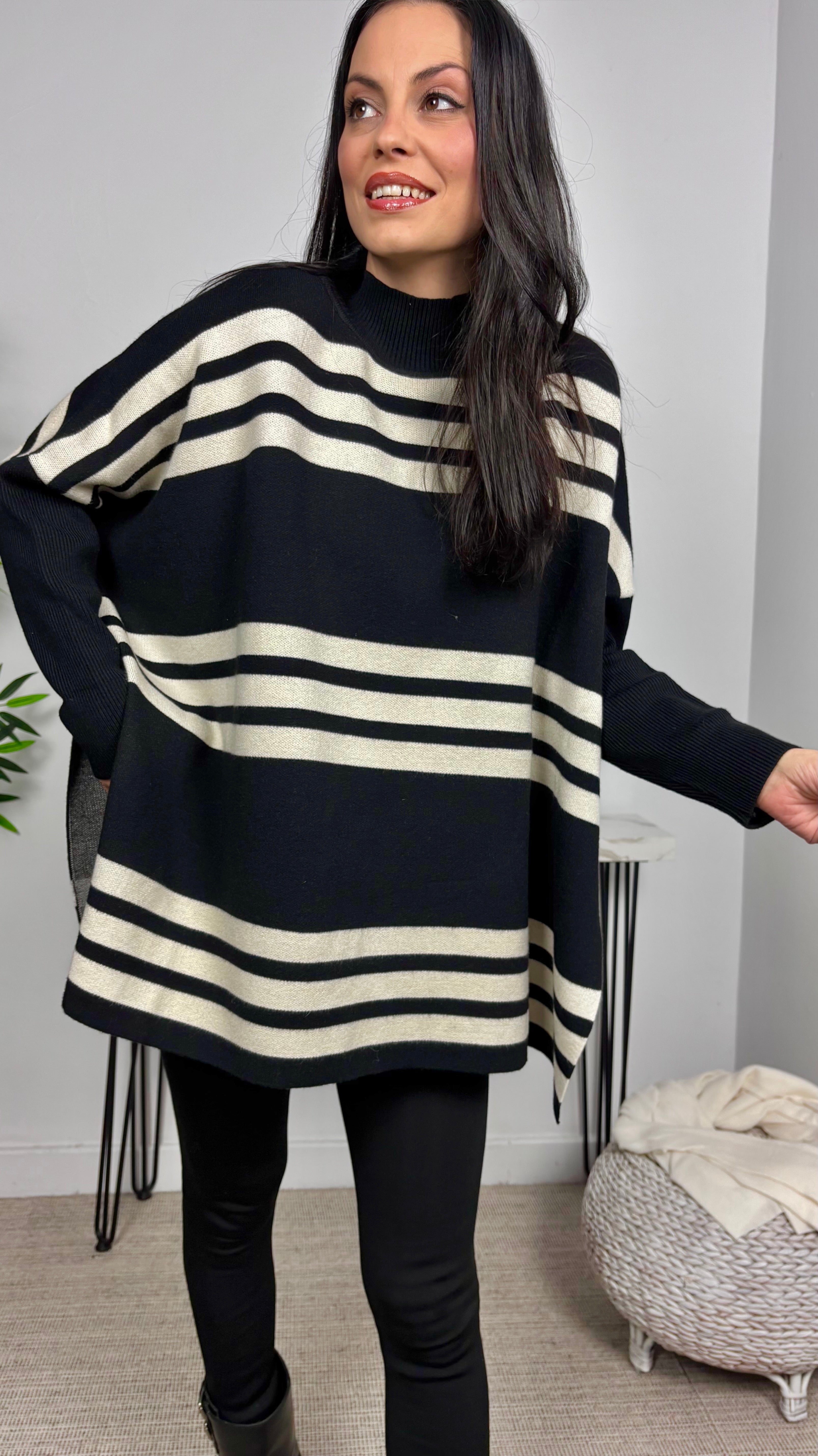 Jersey de rayas de corte oversize, con la manga ajustada con canalé. Abertura lateral.