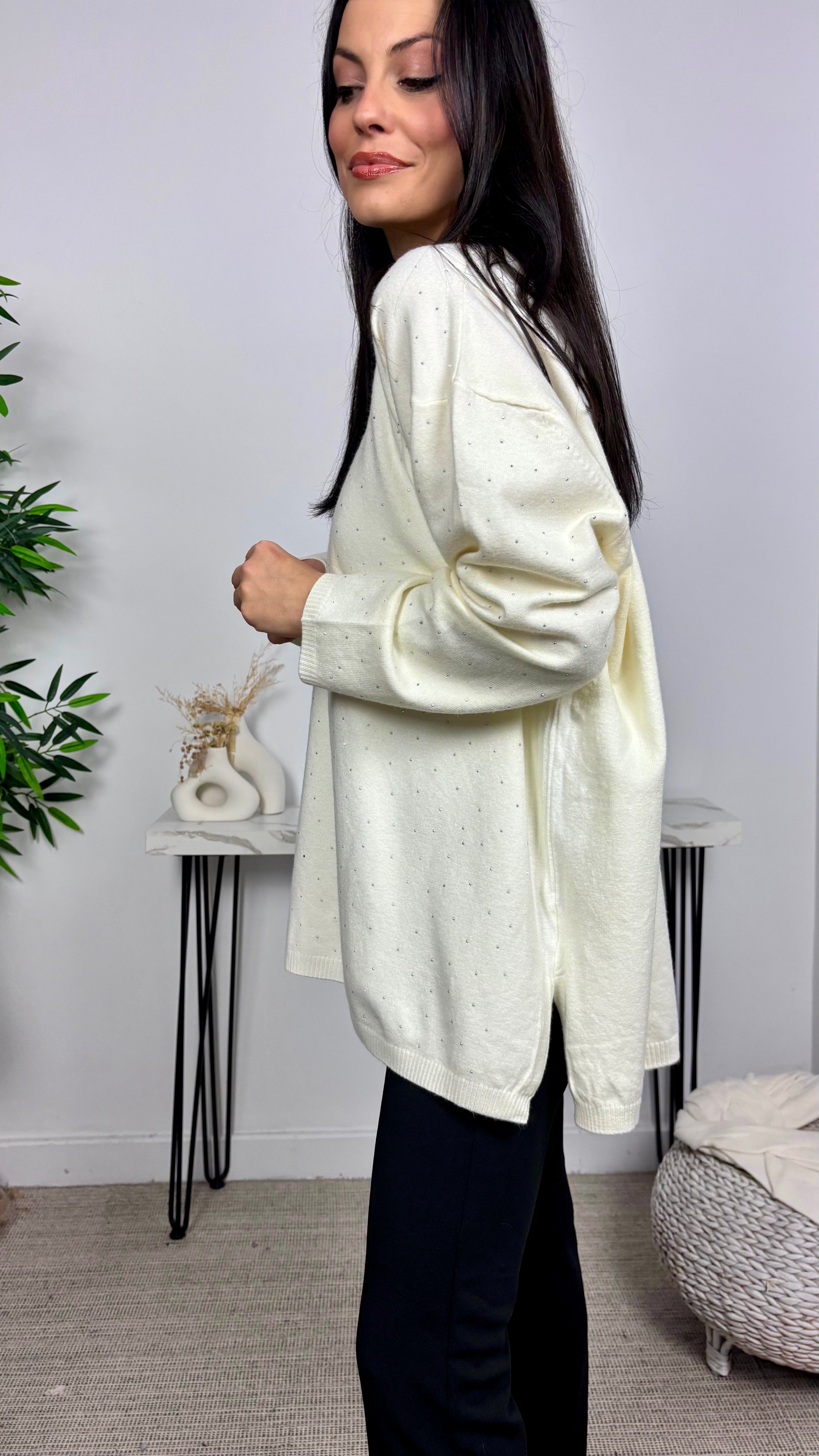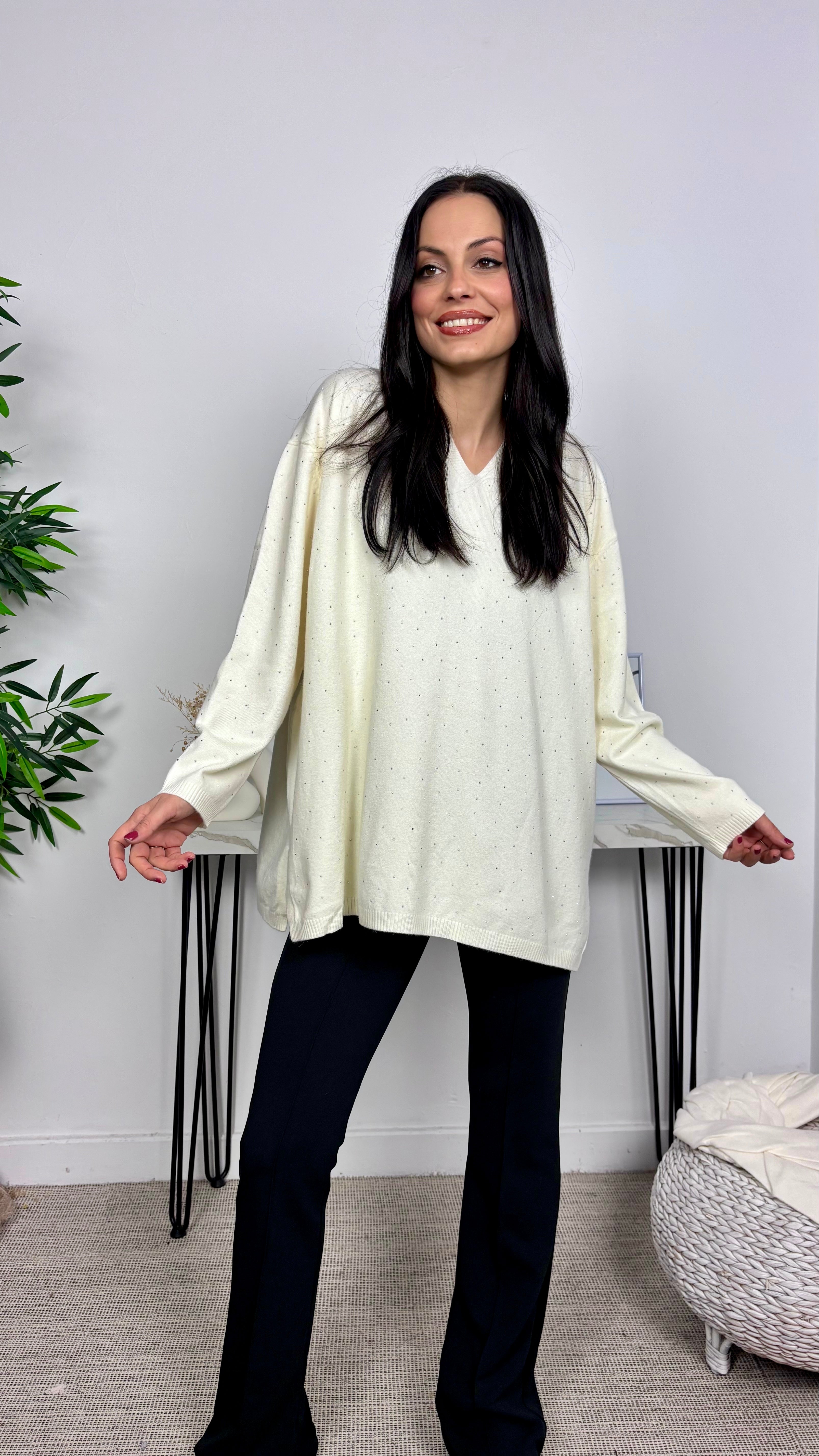 Jersey con mini strass en la parte delantera y en la manga, cuello pico. Talla única desde...