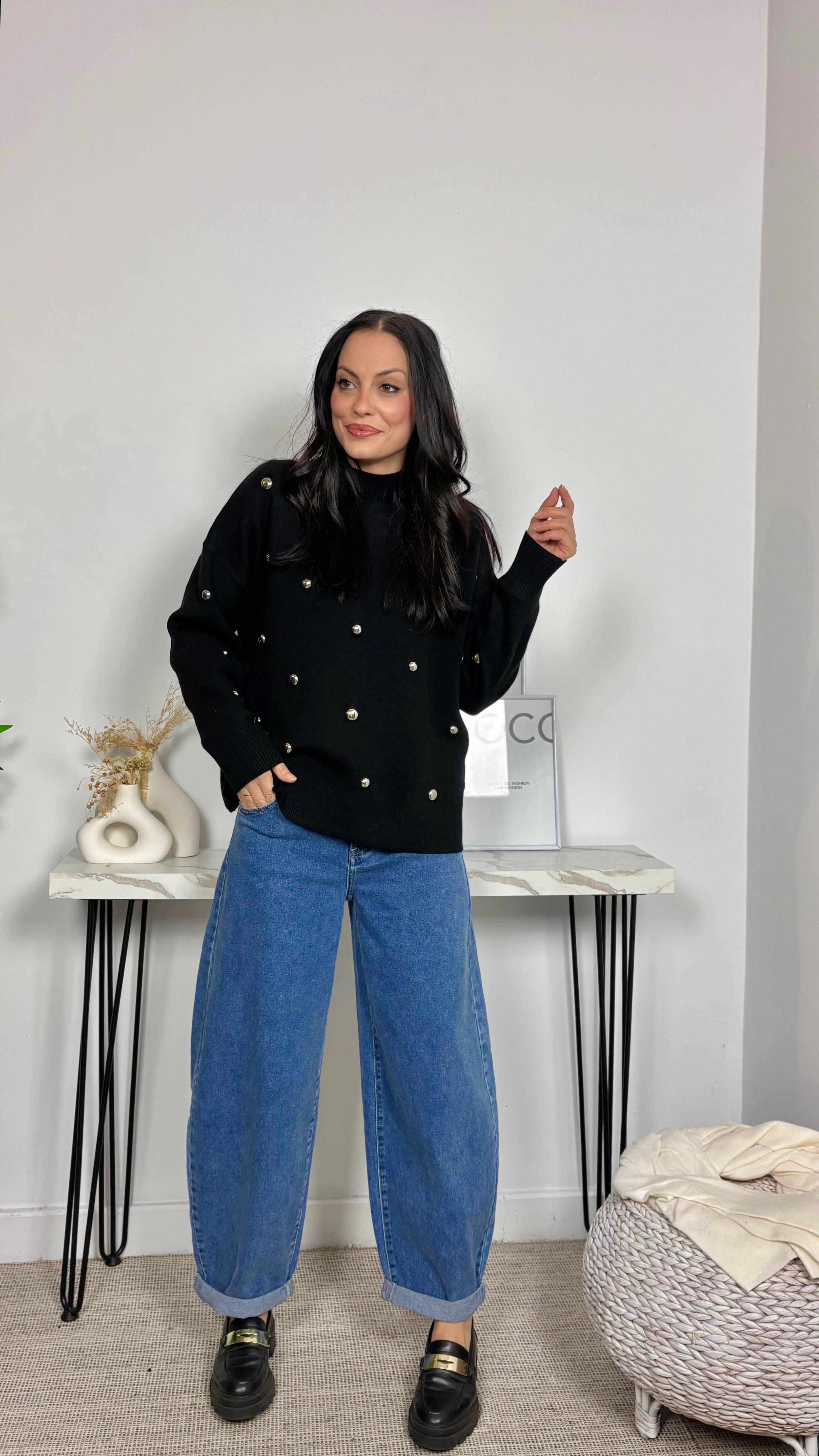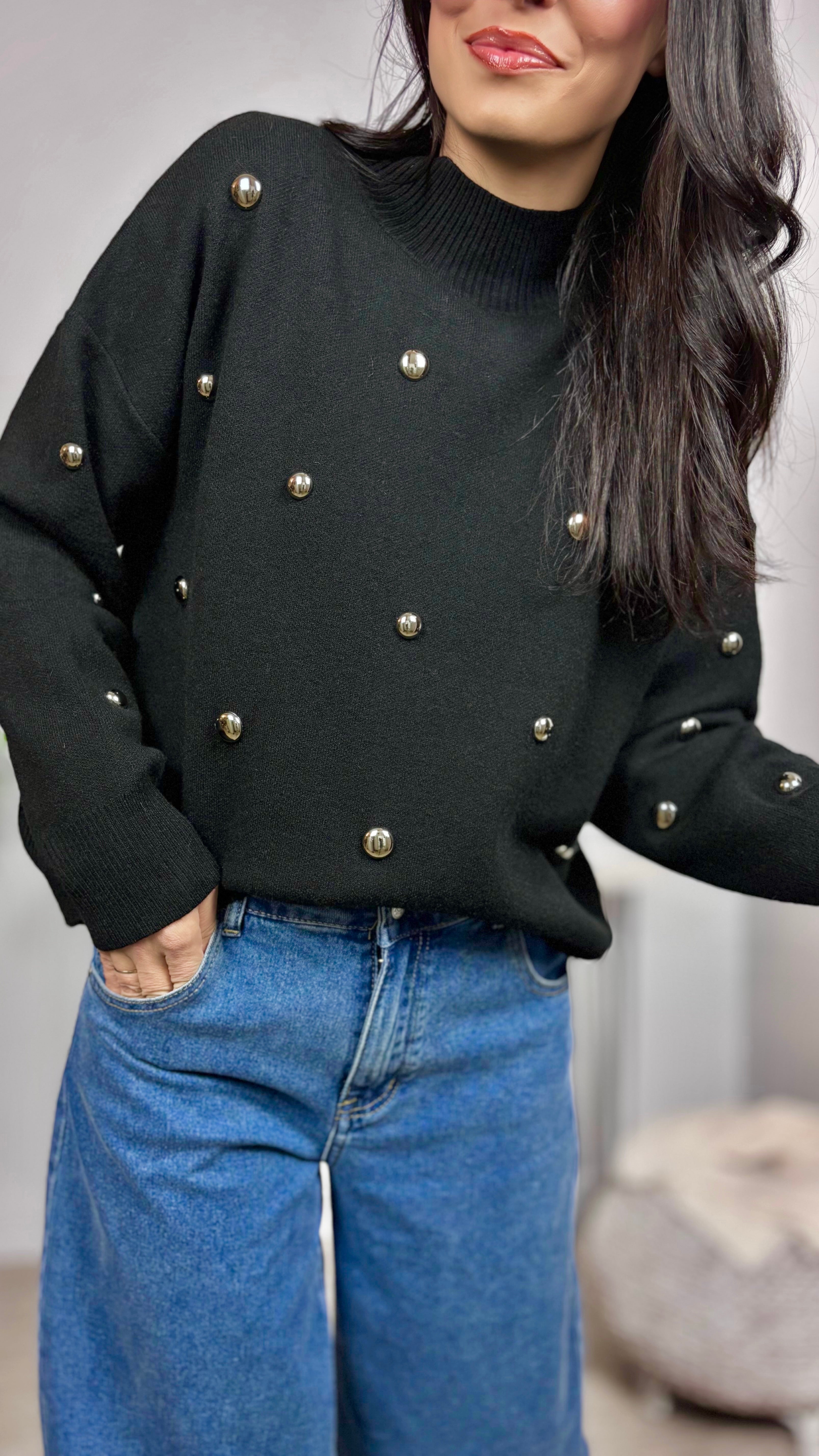 Jersey con tachones dorados en la parte delantera y manga.