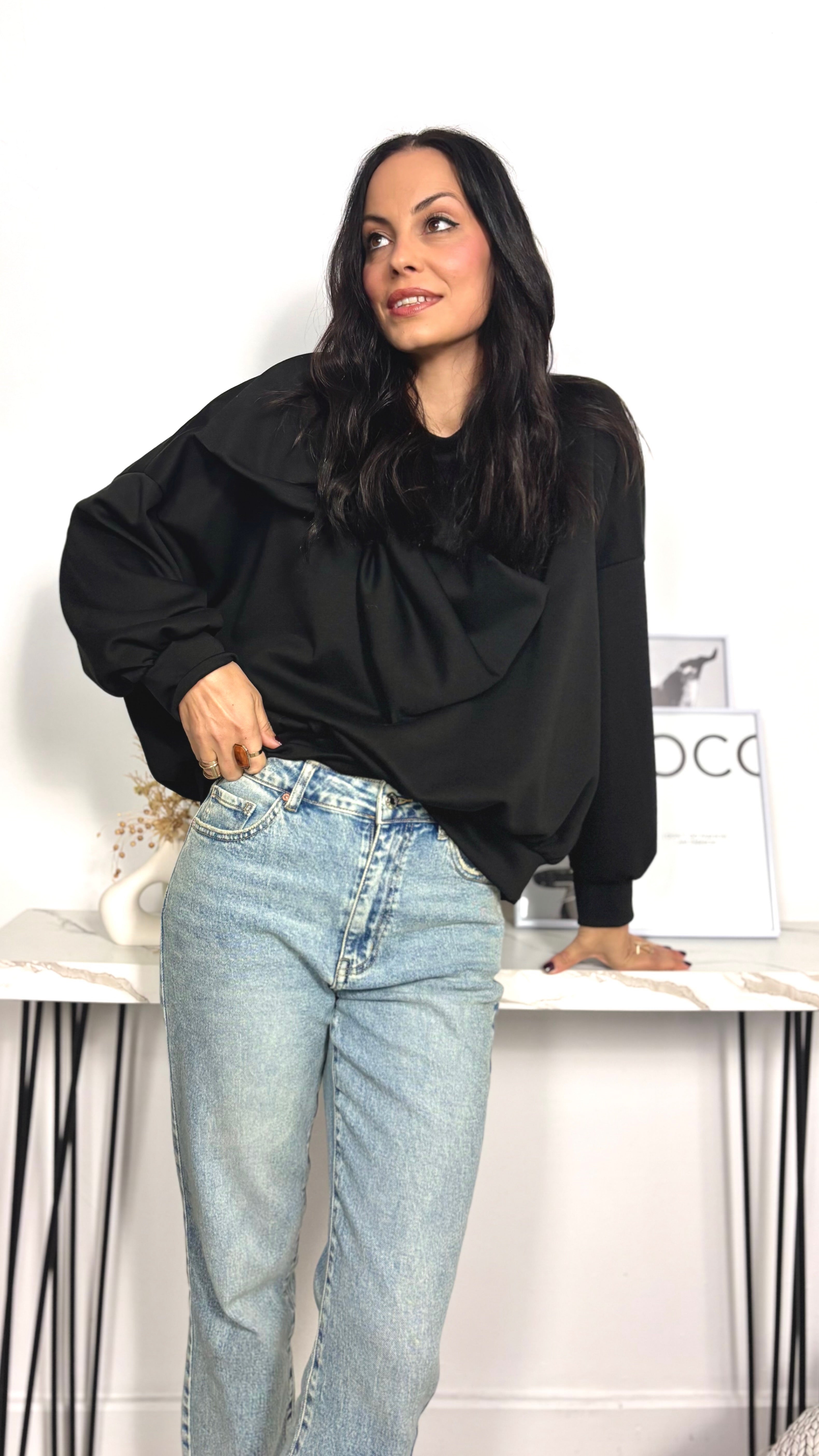 Sudadera con maxi lazo cosido en el hombro y bajo pecho. De corte amplio. Talla única desde...