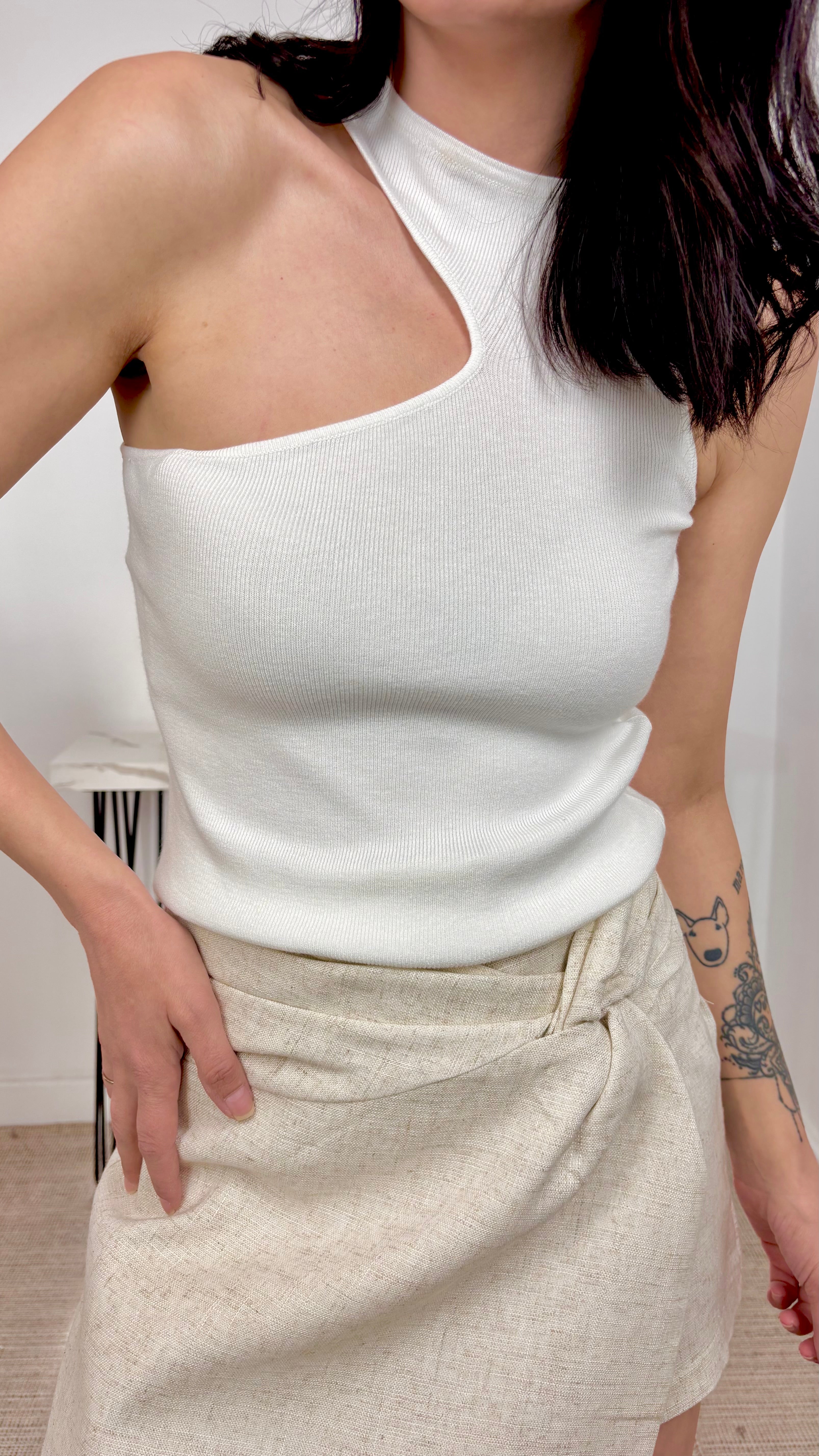 Top Canalé Asimétrico Blanco