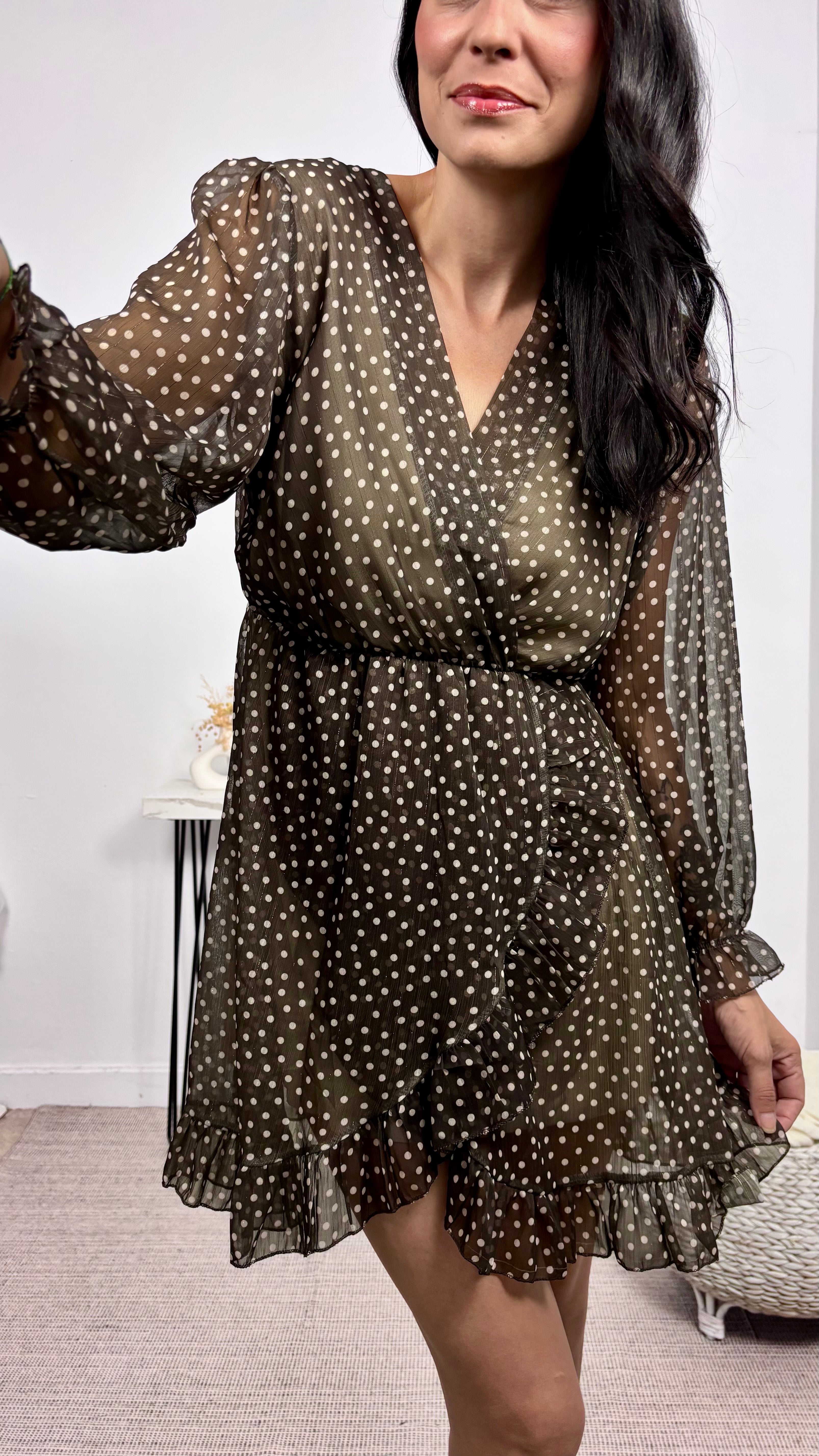 Vestido Gasa Topos Chocolate